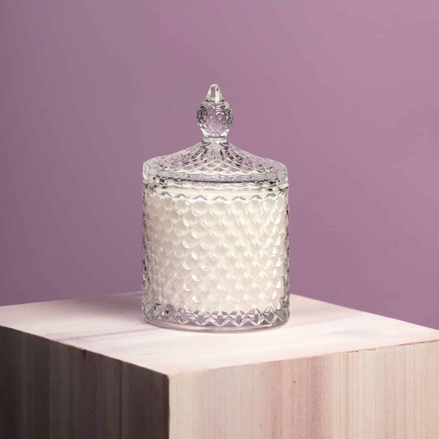 Présentée dans sa jolie bonbonnière en verre, notre bougie dégage une fragrance riche et fruitée.